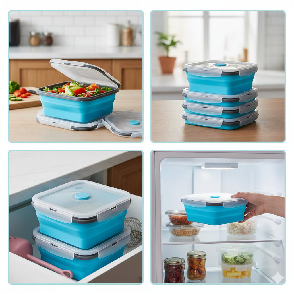 Each lunch box is collapsible, saving up to 60% space when folded — ideal for small kitchens, school bags, office bags, or travel.